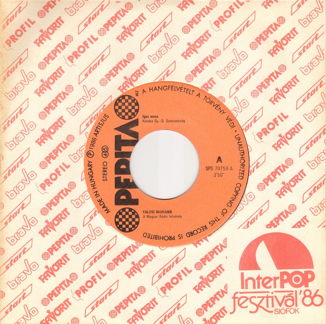 Avant 1990 Budapest comptait un nombre considérable de lieux où étaient vendus des disques. Outre quelques disquaires spécialisés, il y avait beaucoup de librairies qui vendaient des disques ainsi que la chaîne d'électroménager Keravill (qui sera dissoute en décembre 2004). Voilà le contexte jusqu'à la chute du mur bien que dès 1986 commence à apparaître une inflation. La parité franc / forint passe de 6 en 1986 à 10.90 en 1990 mais comme les prix augmentent plus que le forint ne baisse les touristes voient leur fabuleux pouvoir d'achat fondre. Les Autrichiens ne viennent plus. Les produits hongrois disparaissent peu à peu. Les produits mondialisés, limités en qualité, les remplacent. Du coup maintenant ce sont les Hongrois qui font du shopping en Autriche où les prix sont parfois inférieurs à ceux de la Hongrie. Les ventes de CDs en Hongrie ne commencent véritablement qu'après la chute du mur de Berlin en 1990. La Hongrie n'a même pas d'usine de pressage. Elle commence avec Gloria (1988 - 1992) dont le niveau technique laisse à désirer. Les pressages sérieux pour la musique classique Hungaroton sont réalisés par Sony (Autriche). En 1992 apparaît VTCD (VideoTon Compact Disc) qui n'est autre que Gloria privatisée. Ce n'est pas encore le top au niveau des transferts. Il faut attendre le milieu des années 90 pour voir VTCD rejoindre les meilleurs. Je dirais même que maintenant je les trouve supérieur à beaucoup. Cette compagnie à l'avantage de presser la quasi-totalité des labels hongrois, des autoproductions hongroises et même des majors installés en Hongrie. Les pochettes de 45 tours mises en illustration ci-dessous datent toutes des années 80. |