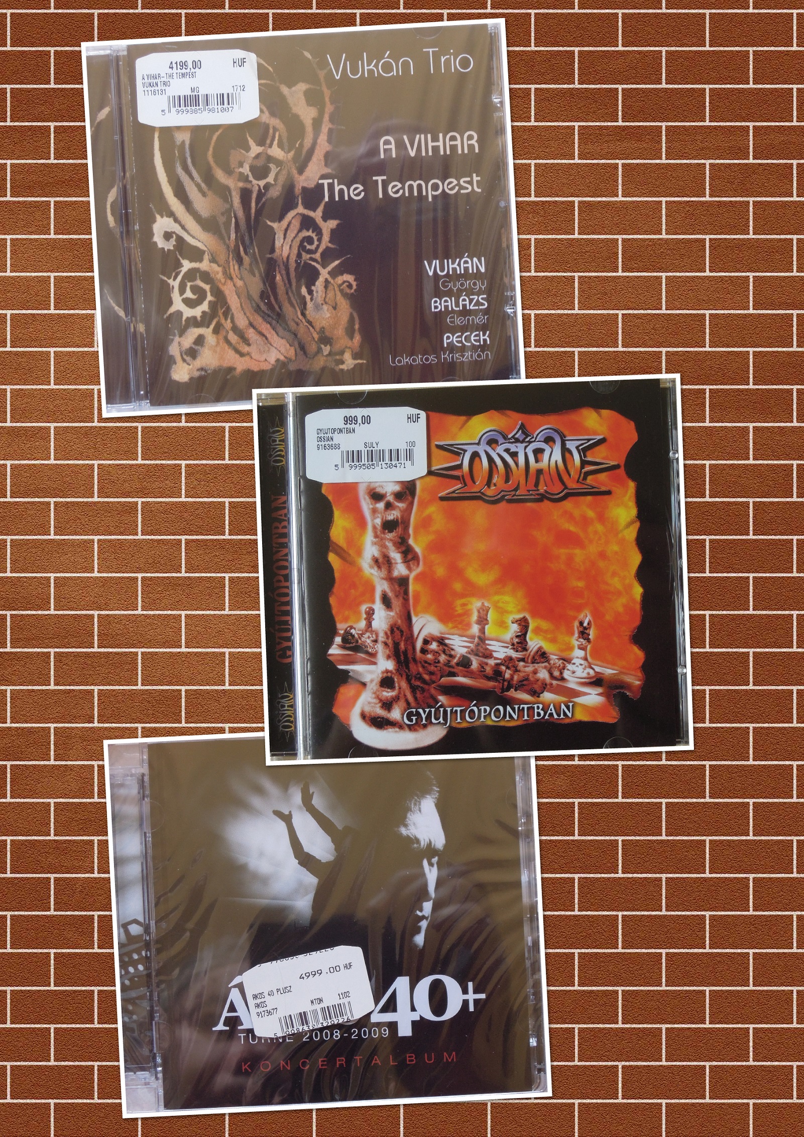 Ceux-ci oscillent entre 299 forints (1 euro) et 5100 forints (17 euros) mais se concentrent plus exclusivement sur une plage allant de 2200 à 4600 forints (7,4 à 15,4 euros). Vu le pouvoir d'achat de 85% des Hongrois ces prix sont très élevés voire insensés. Hammer Records qui inclue Nail, Edge et Hadak Útja Kiadó a fait des efforts en faisant passer le prix de la plupart de ses CDs de 1599 forints (5.30 euros) à 999 forints (3.30 euros). Certes il s'agit uniquement de metal, hard rock et punk mais les enregistrements sont généralement très bons. |