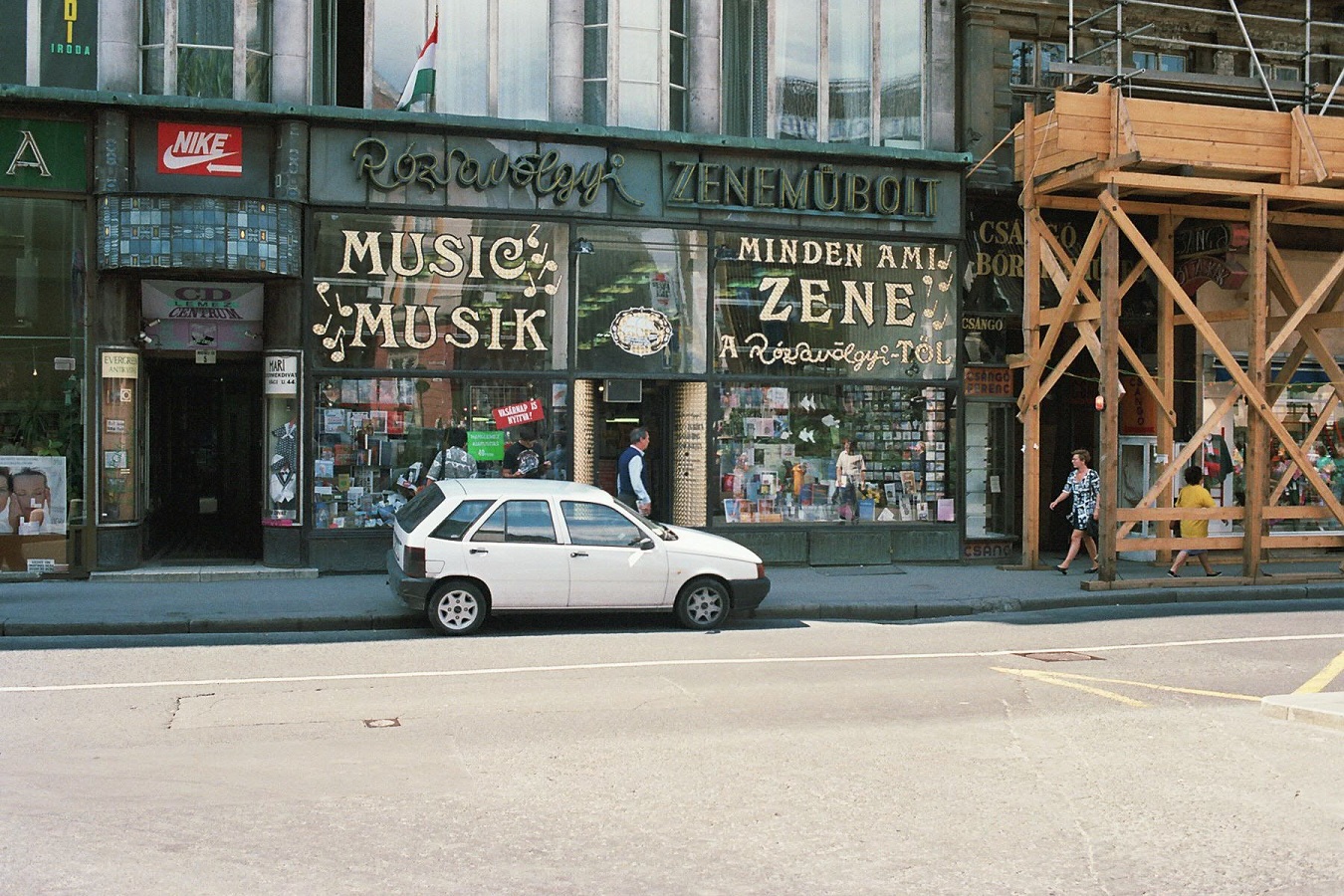 Le disquaire mythique de Budapest fondé au début du XXème siècle. De 1981 à 1984 je logeais à 100 mètres de là. Je m’y rendais souvent au point d'en connaître tous les recoins. Ce magasin était le meilleur de Budapest en ce temps et les clients nombreux. Il fallait faire la queue à la caisse.