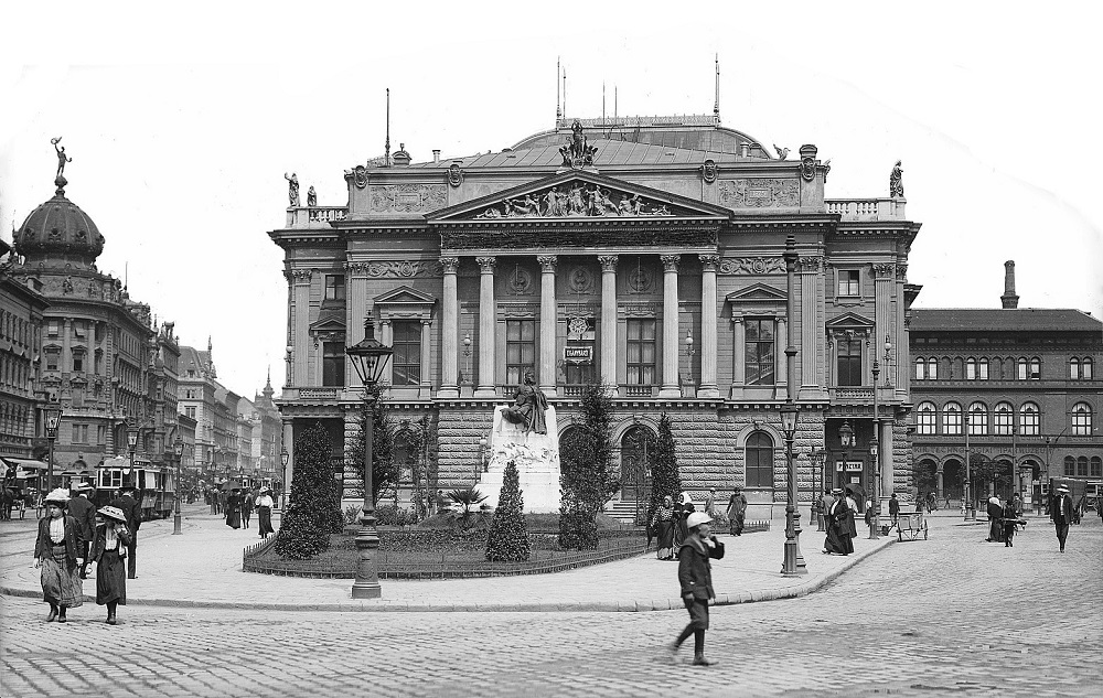 A Vígszínház sarkánál, - Lipót körút (1937-től Szent István körút) Pannónia utca sarok (1912)