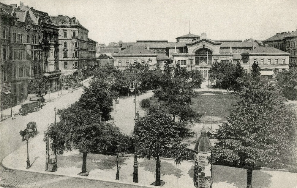 Kerepesi út, Keleti pu., érkezési oldal, háttérben balra a Park Szálloda (1954)