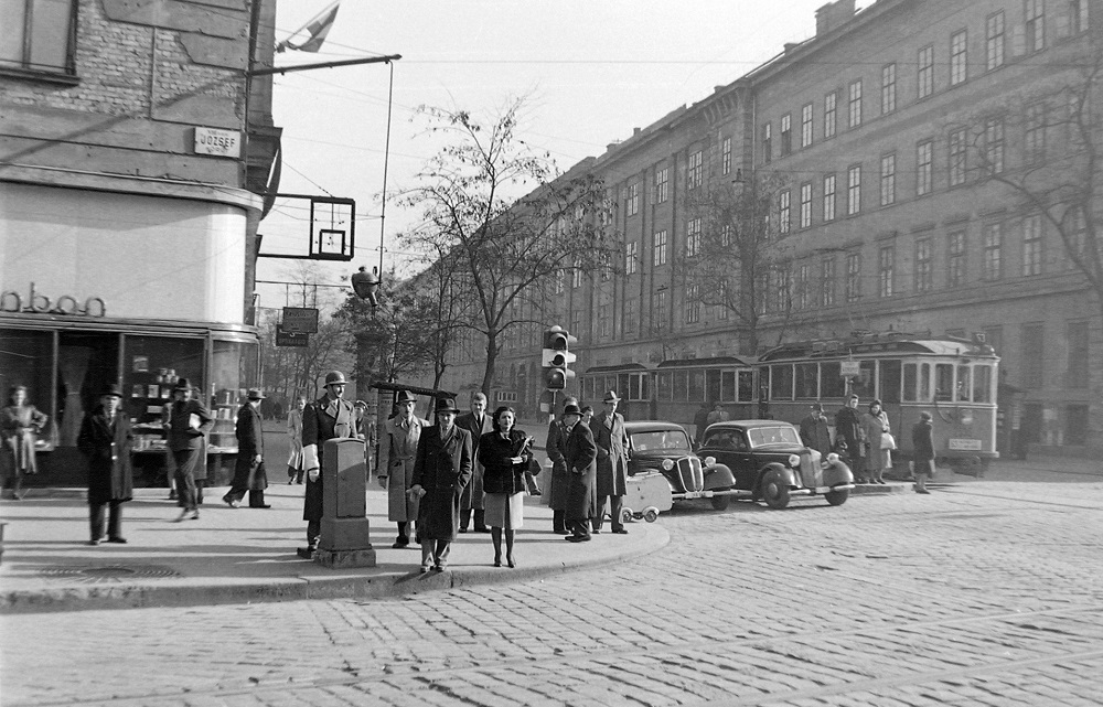 háttérben a Horváth Mihály téren a Szent József-templom (1970)