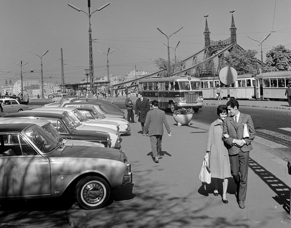 Gellért tér, Gellért Szálló elött parkoló külföldi vendégek autói - 1965 július 7.